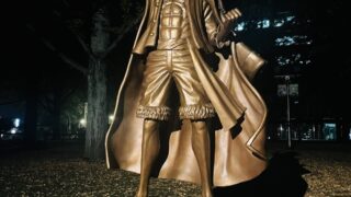 熊本旅行つづき。ホテルにチェックインしたあとは、少しだけ夜のお散歩へ行くことにしました。というのも――熊本は、ワンピース作者・尾田栄一郎さんの出身地!県内のあちこちに「麦わらの一味」の銅像があるらしいのです。その中でも、熊本県庁にあるルフィ…