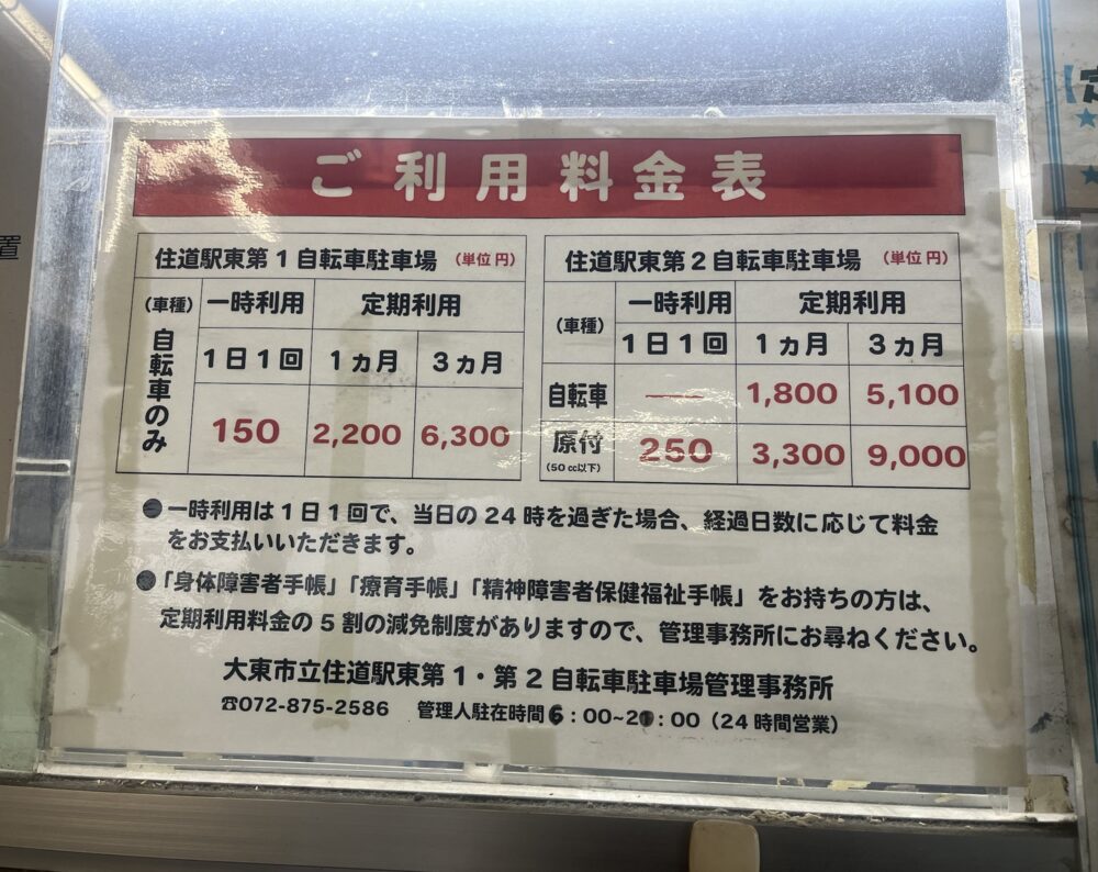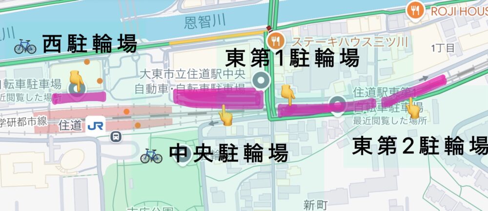 JR住道駅周辺には複数の市営駐輪場がありますが、