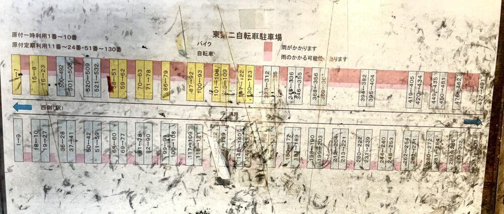 中央駐輪場は指定番号制ではなく、