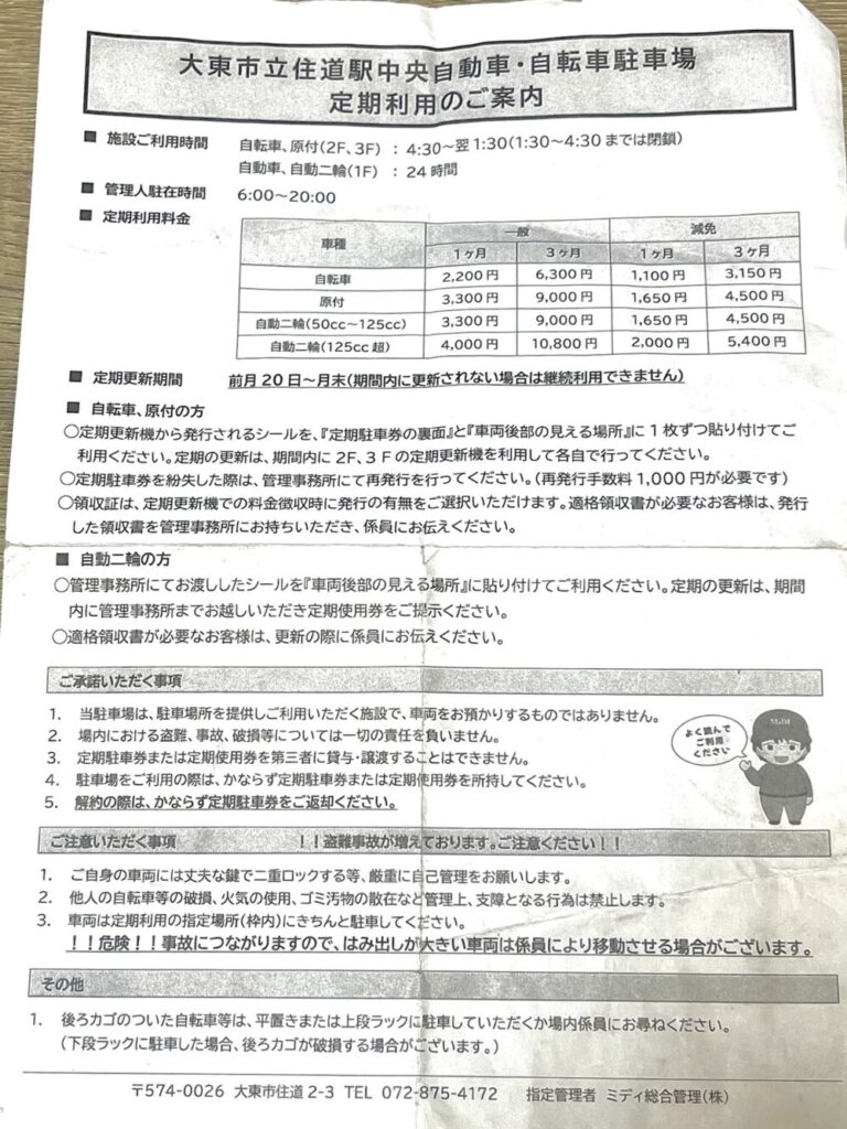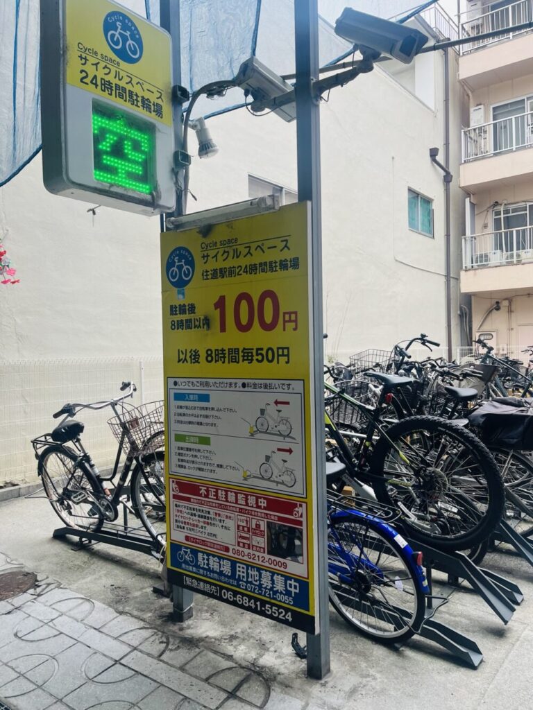 住道駅周辺には、定期利用はできませんが、👉 商店街内に時間貸し駐輪場もあります。(安い!)