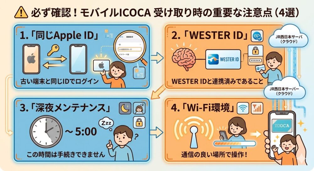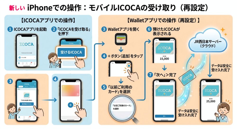 モバイルICOCAは、iCloudなどのバックアップでは引き継げません。