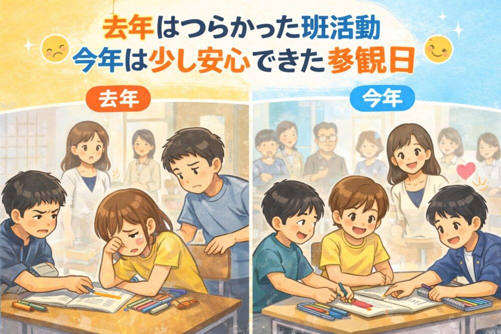 昨年は、班行動で学校が嫌になってた娘。班のメンバーが協力的やなかったり、順番に使うものが回ってこなかったりで、かなりストレスを溜めてたんですよ。他にも、自分に合わない子が寄ってきて、それがしんどかったみたい。