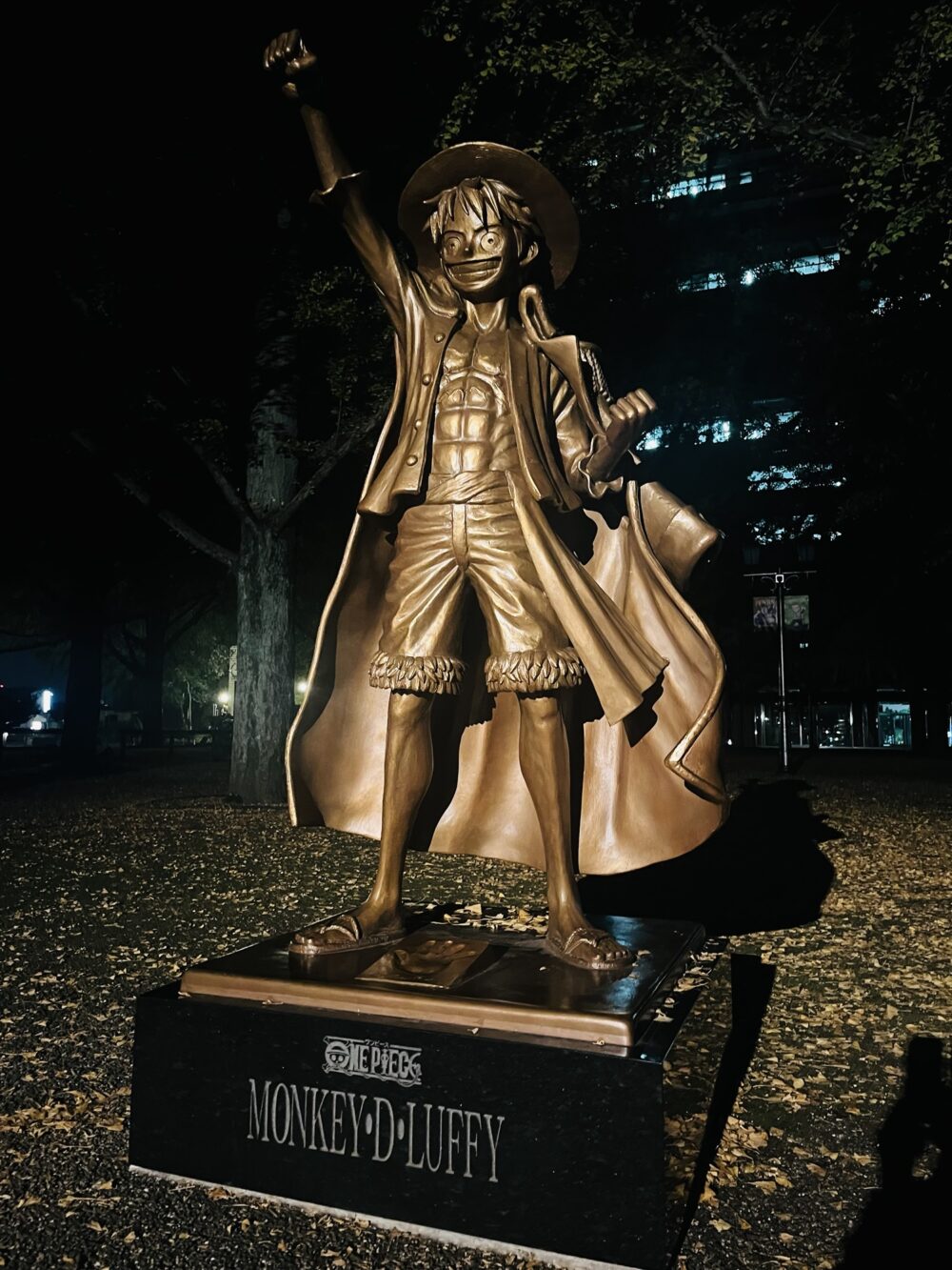 夜でもルフィの銅像の前には先客が2組ほどいて、人気ぶりにびっくり。
