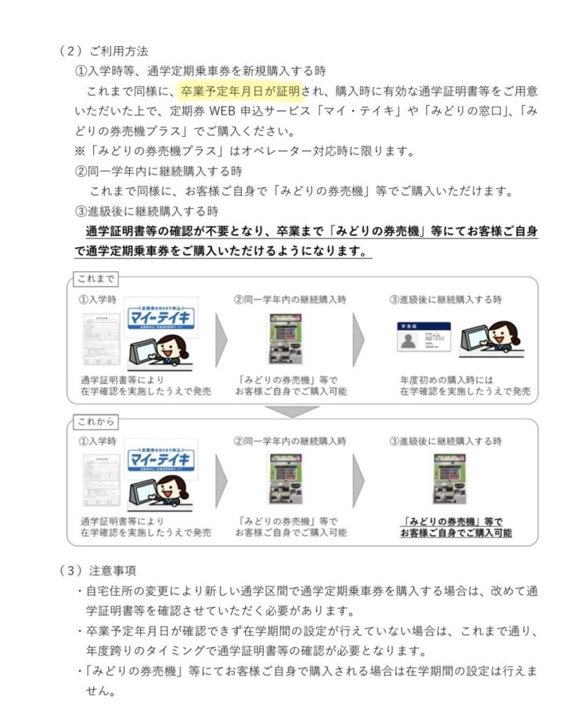 👉 通学定期は“卒業日登録されるかされないか!”です