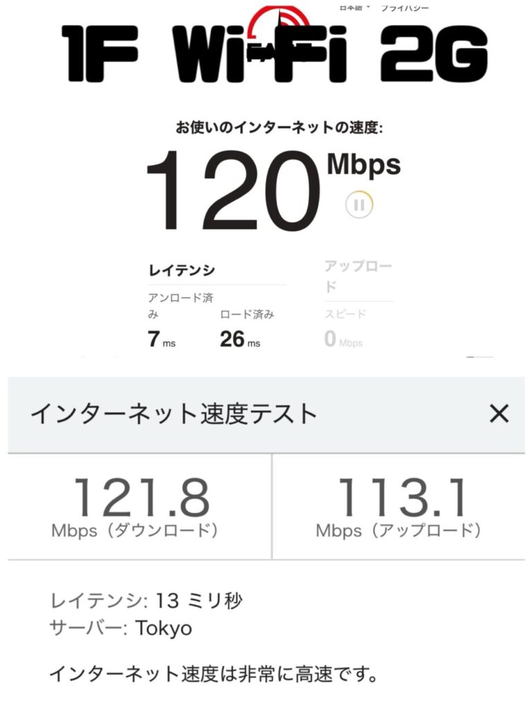 | 1階(親機) | Wi-Fi | 2.4GHz | 120Mbps | 113Mbps | 13〜26ms | △ 普段使いならOK |