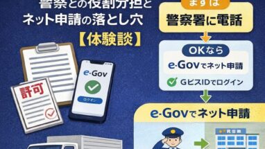 トラックの通行禁止道路の通行許可。ネット申請ができるって聞いて「これからは e-Gov で楽になるやん!」と思って始めたら、電子認証GビズIDマイナンバーカード警察署とのやりとり正直、めちゃくちゃ分かりにくかったです。でも実際に一通りやって...