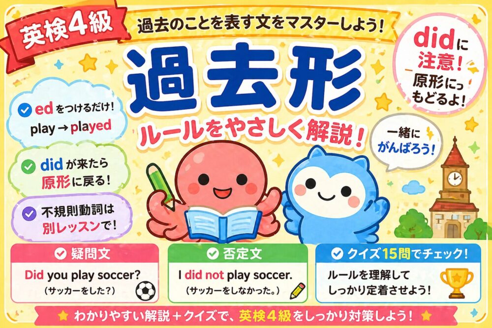 英検4級でよく出る「過去形」をわかりやすく解説するよ🐙✨