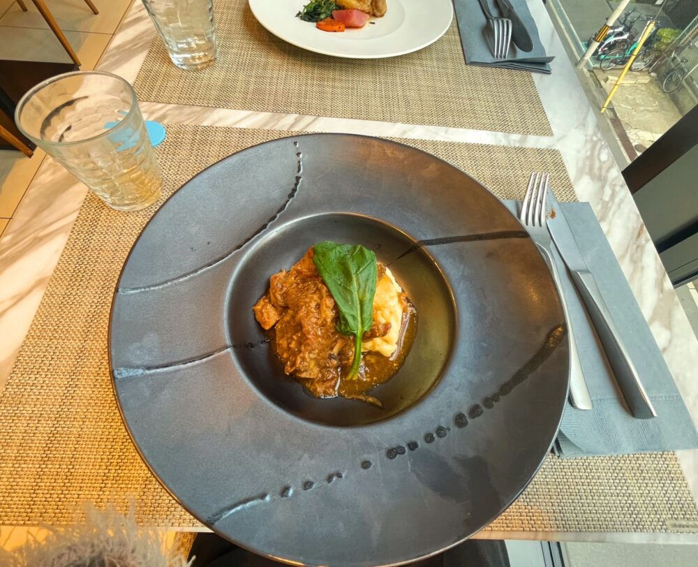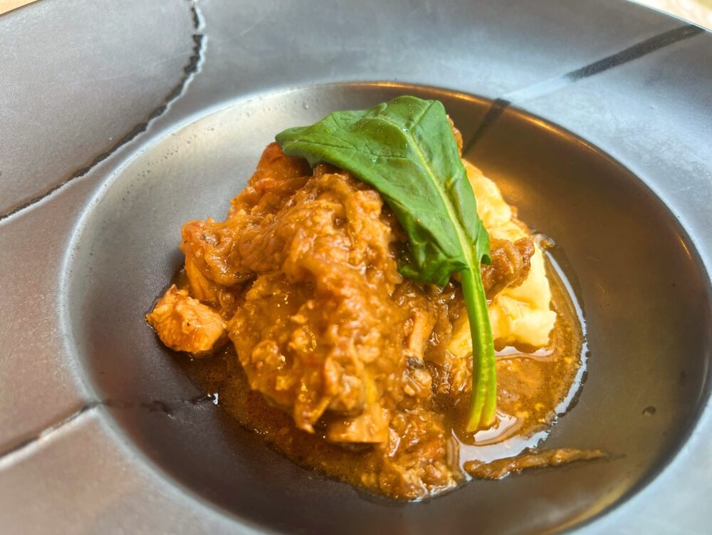 骨付き豚バラに、なめらかなマッシュポテト添え。