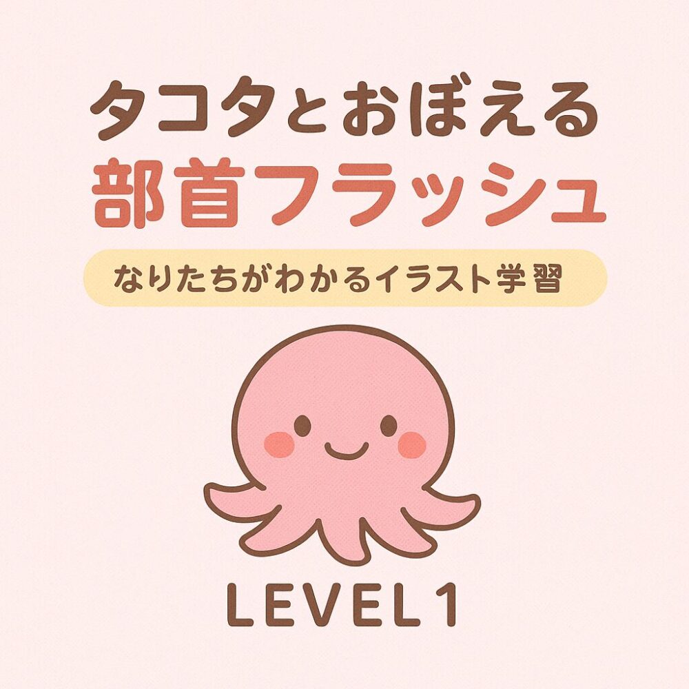 タコタとおぼえる部首フラッシュ|読み方・意味がわかるイラスト学習LEVEL1 カテゴリー一覧 X Facebook コピー 2025.12.07 🔀 シャッフル よみ: この部首はどんなイメージ? ⟲ 1番からもう一回 ▶ つぎの部首へ